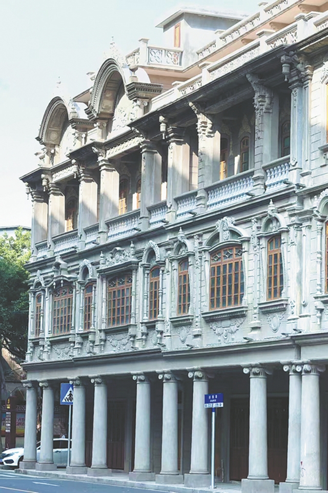 The qilou facades are inspired by Western and Southeast Asian architectural styles. The classical Greek columns on the ground floor are strong and elegant. Some buildings have stained-glass windows. There are verandas and terraces on higher floors.