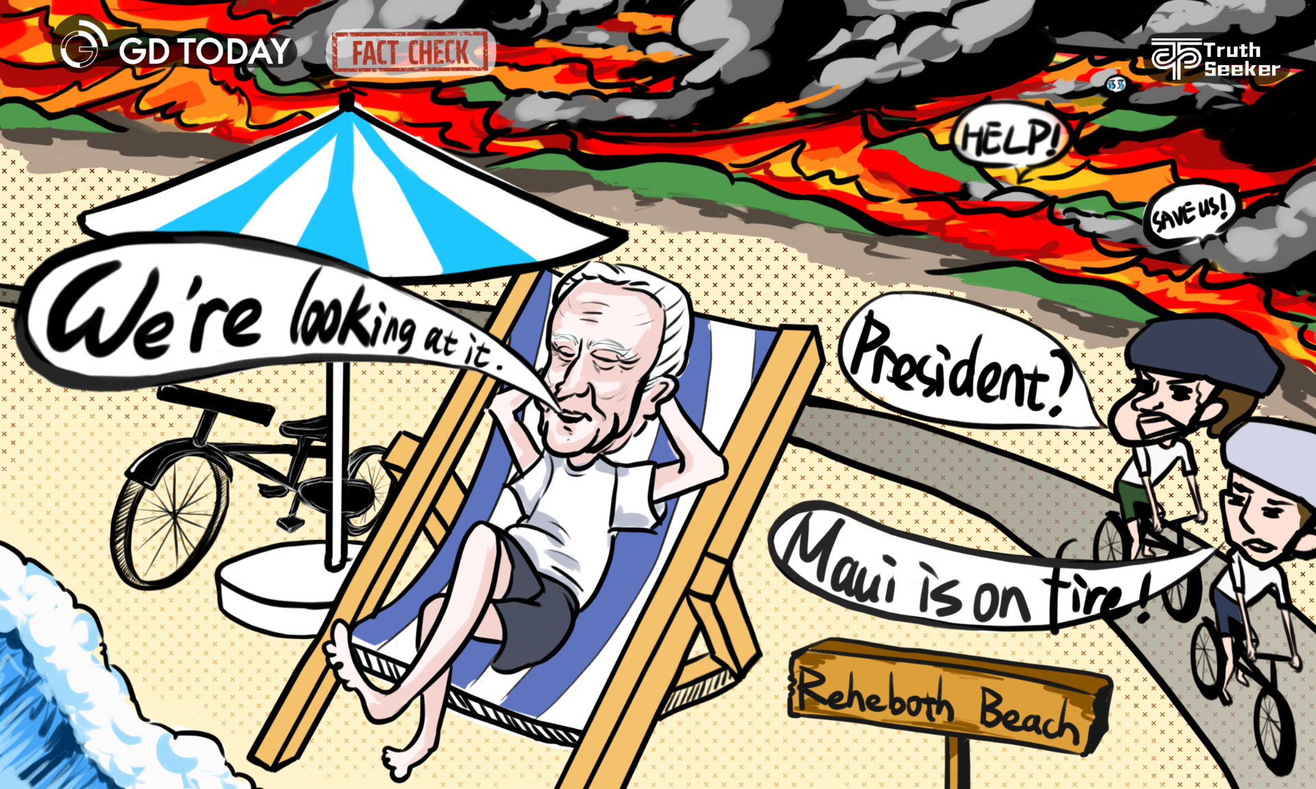The death toll from the Maui wildfires in the U.S. state of Hawaii reached 110 on August 16, and this number continues to climb. When people have been crying about losing their homeland and beloved for over a week, however, President Biden was enjoying a bike ride in Rehoboth Beach, Delaware, and answered, "We're looking at it," in response to a reporter's request for a comment on the deadly fires.