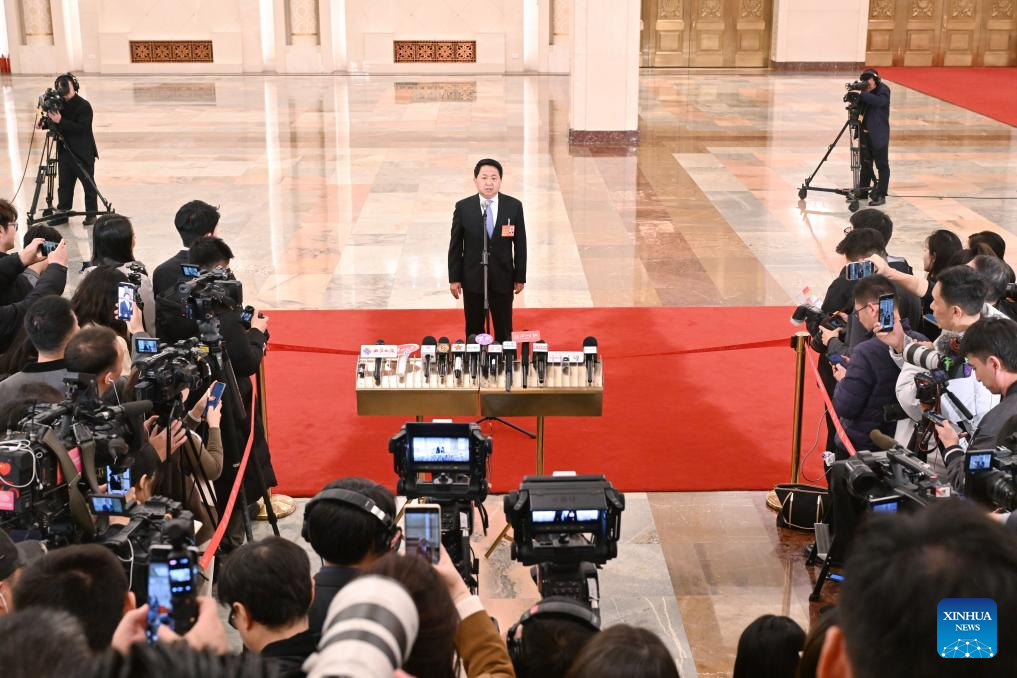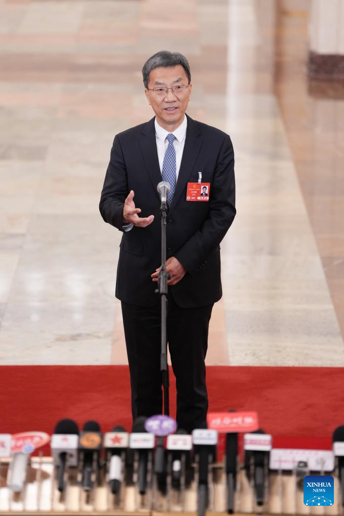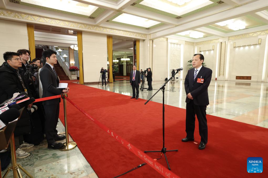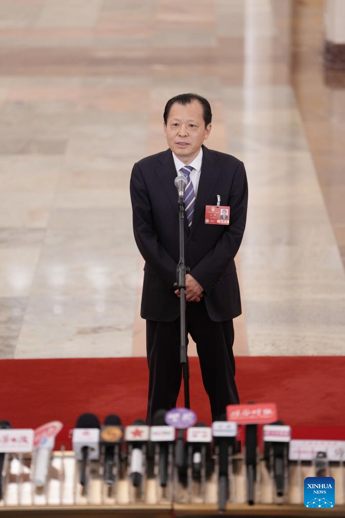 Luo Wen, head of the State Administration for Market Regulation, gives an interview after the opening meeting of the third session of the 14th National People's Congress (NPC) at the Great Hall of the People in Beijing, capital of China, March 5, 2025. (Xinhua/Lyu Shuai)