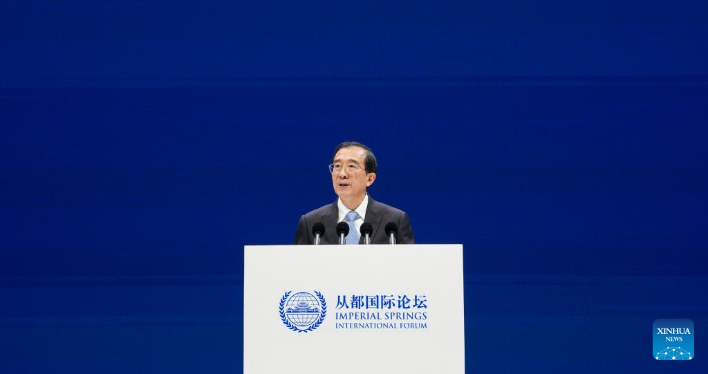 Yang Zhen, vice chairman of the National Committee of the Chinese People's Political Consultative Conference, attends and addresses the opening ceremony of the 2025 Imperial Springs International Forum in Guangzhou, south China's Guangdong Province, Dec. 2, 2025. (Xinhua/Wu Lu)