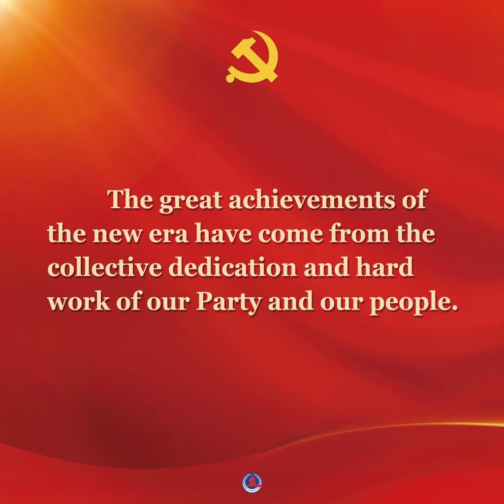 -- The great achievements of the new era have come from the collective dedication and hard work of our Party and our people.