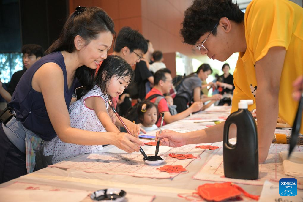 People participate in an activity celebrating Chinese New Year at Singapore Chinese Cultural Centre, Singapore, on Jan. 19, 2025. Celebrations and cultural activities are being held around the globe to welcome the upcoming Chinese New Year. (Photo by Then Chih Wey/Xinhua)