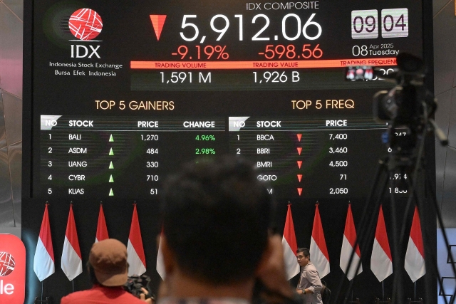 People monitor the opening of the composite stock index at the Indonesia Stock Exchange in Jakarta on April 8, 2025. (CFP Photo)