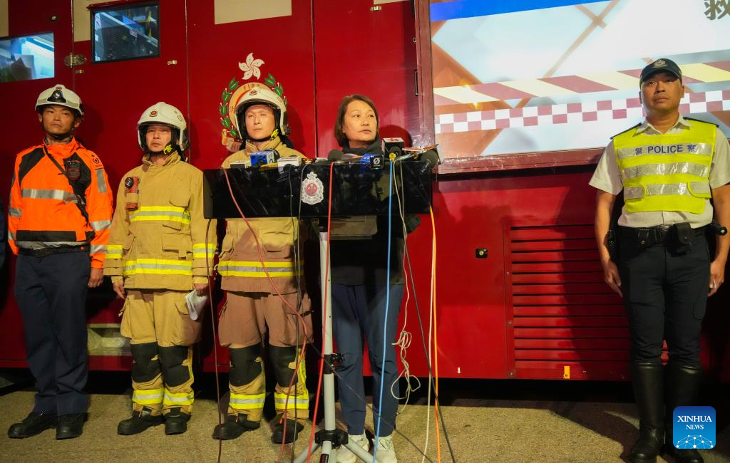 A press briefing is held by the Hong Kong Police Force and the Fire Services Department in Hong Kong, south China, on Nov. 27, 2025. (Xinhua/Zhu Wei)