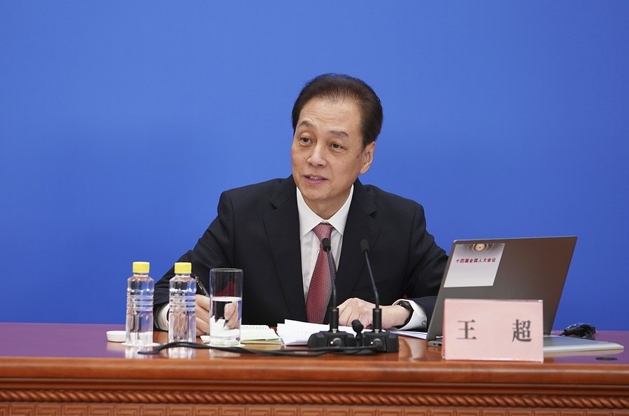 Wang Chao, spokesperson for the first session of the 14th National People's Congress (NPC), attends a press conference at the Great Hall of the People in Beijing, capital of China, March 4, 2023. The NPC, China's national legislature, held a press conference Saturday, one day before the opening of its annual session. (Xinhua/Xing Guangli)