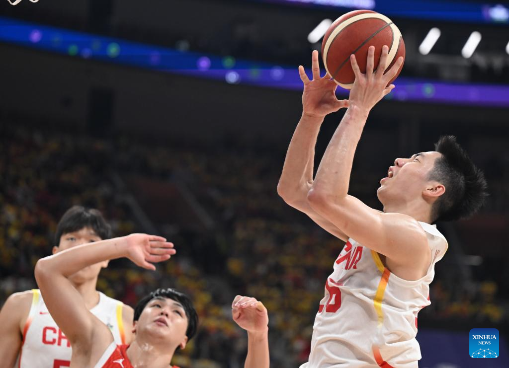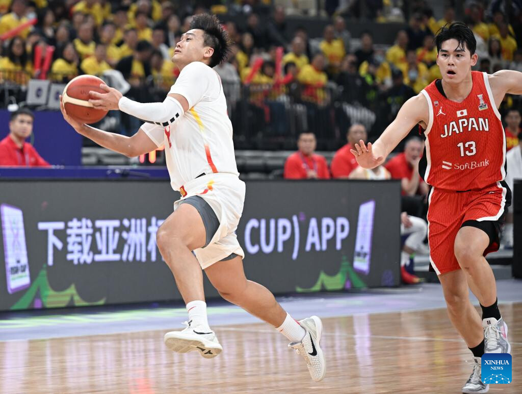 The Chinese men's basketball team won 100-58 over Japan in a Group C game of the 2025 FIBA Asia Cup qualifiers on Thursday evening, securing its place in the Asia Cup.