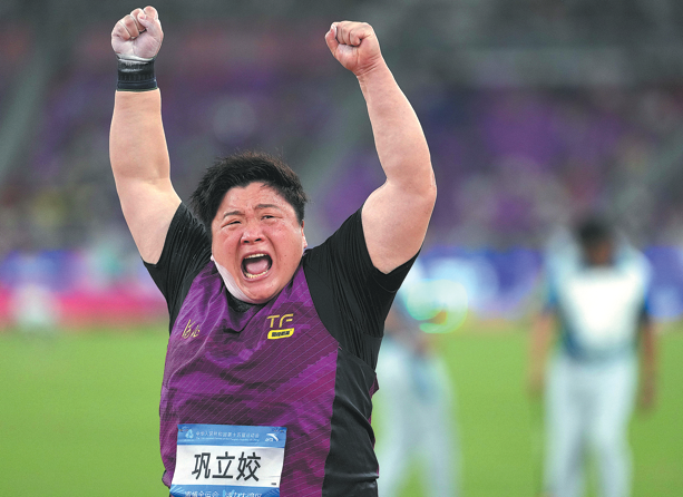 As the metal ball landed, Gong thrust her arms into the air and shouted. She bowed deeply to the crowd at the Guangdong Olympic Sports Center Stadium in Guangzhou, and then the tears came — a release shaped by grief for her late mother, the thrill of clinching her fifth consecutive National Games title and the ache of leaving the arena for the last time.