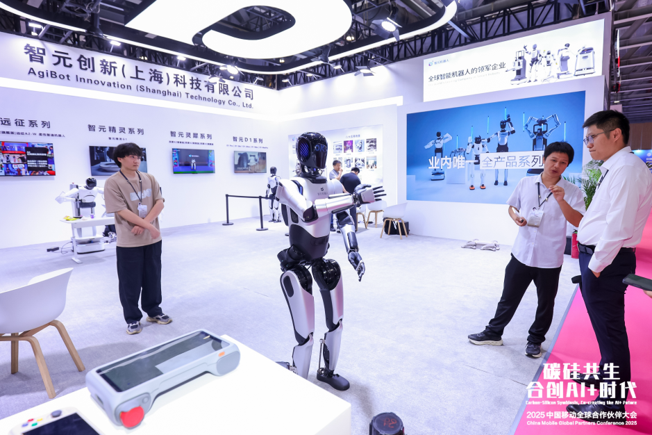AgiBot, a key partner of China Mobile, is showcasing its progress toward scaled, industrialized, and commercialized robotics at the latter's ongoing annual global partners' conference in Guangzhou, Guangdong province. A2 is the company's first full-sized humanoid robot designed for scaled deployment, serving as a receptionist and guide—capable of autonomous movement and fluent interaction powered by its self-developed large language model.