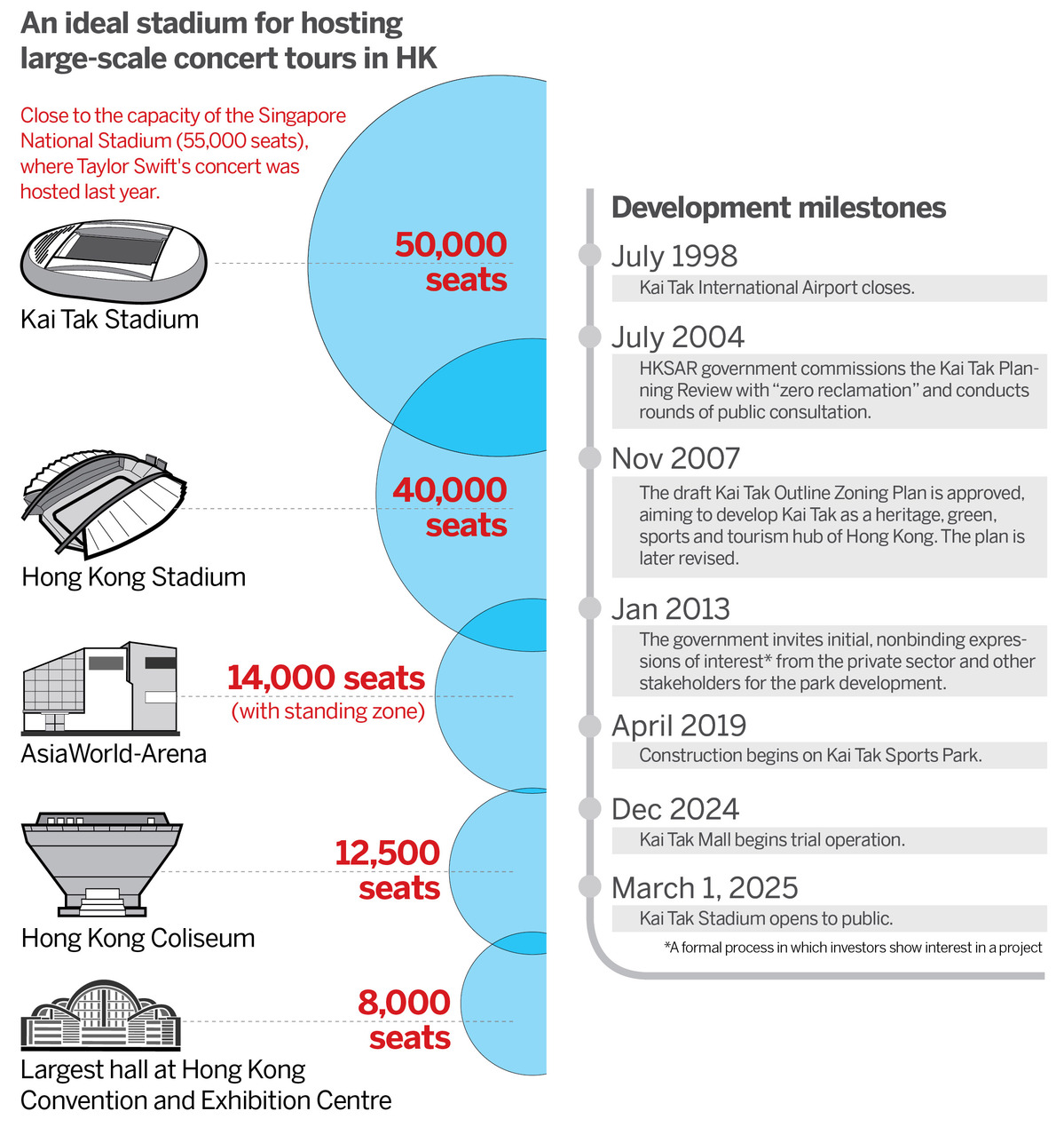 Lawmaker Kenneth Fok Kai-kong told China Daily that most local concert-ready facilities hold fewer than 20,000 seats, with organizers forced to book time slots up to a year in advance amid overwhelming demand.