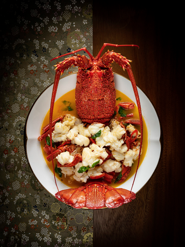 Wok-fried Australian lobster with "kinam" basil and satay bean paste at The Bay by Chef Fei. [Photo provided to chinadaily.com.cn]