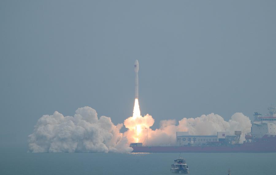 It came after a rocket lifted off on Wednesday from the sea in east China's Shandong Province, sending 11 Geely-06 satellites into a preset orbit.