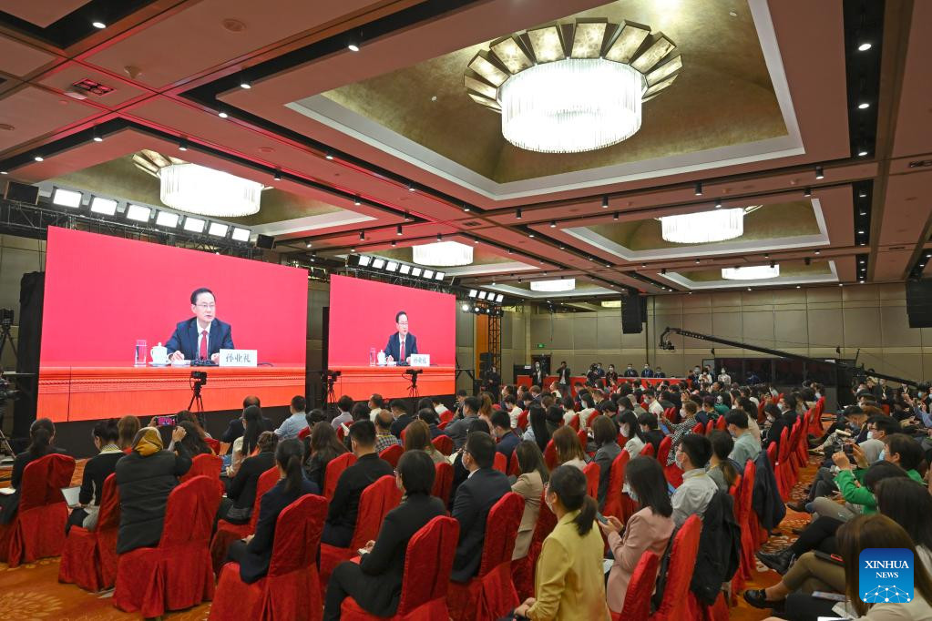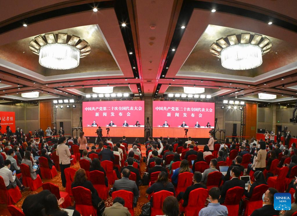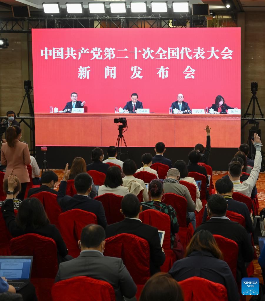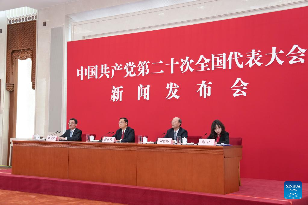 Sun Yeli, spokesperson for the 20th National Congress of the Communist Party of China (CPC), holds a press conference at the Great Hall of the People in Beijing, capital of China, Oct. 15, 2022. (Xinhua/Cai Yang)