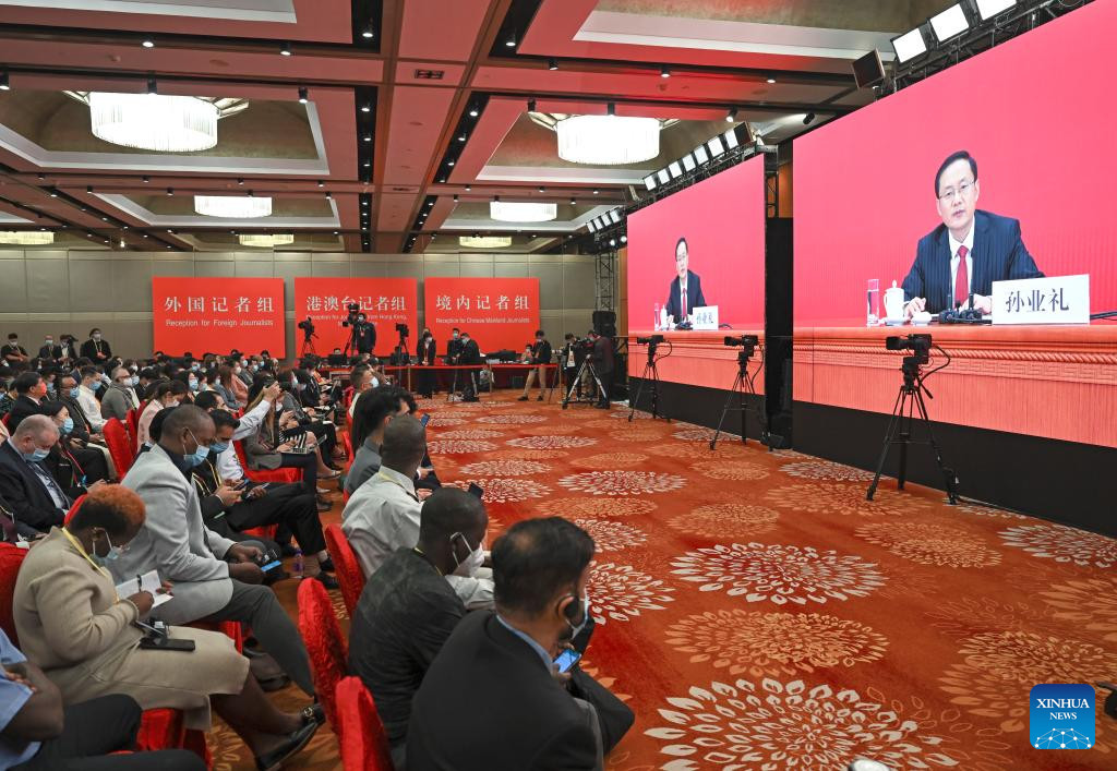 Journalists attend a press conference held by Sun Yeli, spokesperson for the 20th National Congress of the Communist Party of China (CPC), via video link in Beijing, capital of China, Oct. 15, 2022. (Xinhua/Jin Liangkuai)