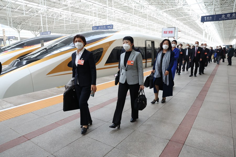 Delegates from Inner Mongolia Autonomous Region to the 20th National Congress of the Communist Party of China arrive in Beijing, capital of China, Oct. 13, 2022. (Xinhua/Zhang Yuwei)