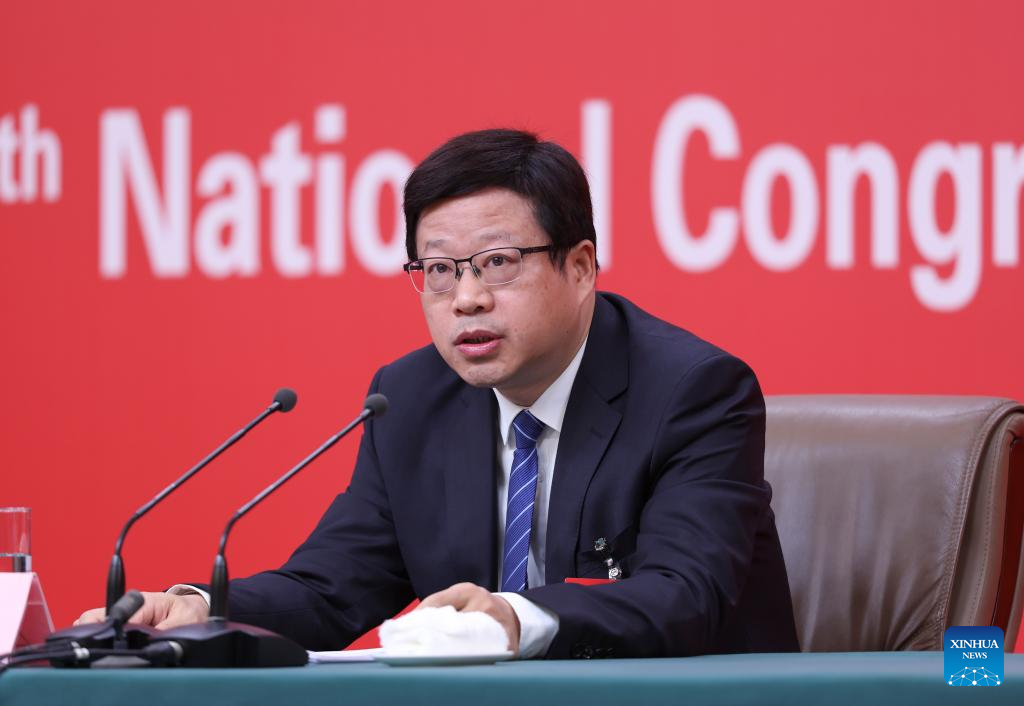 Cong Liang, head of the State Grain and Reserves Administration, speaks at a press conference on the sidelines of the ongoing 20th National Congress of the Communist Party of China (CPC), in Beijing, capital of China, Oct. 17, 2022. (Xinhua/Chen Jianli)