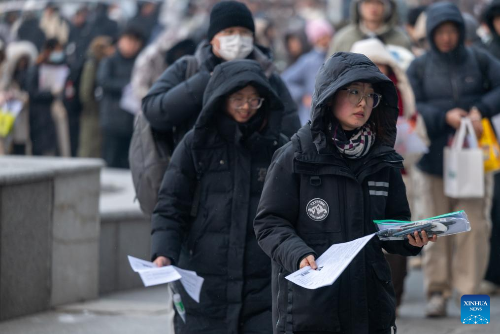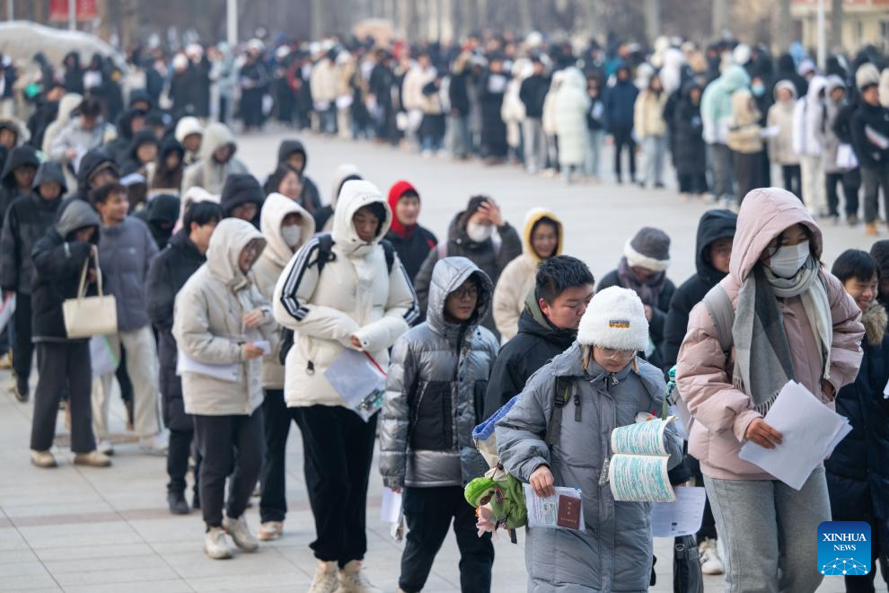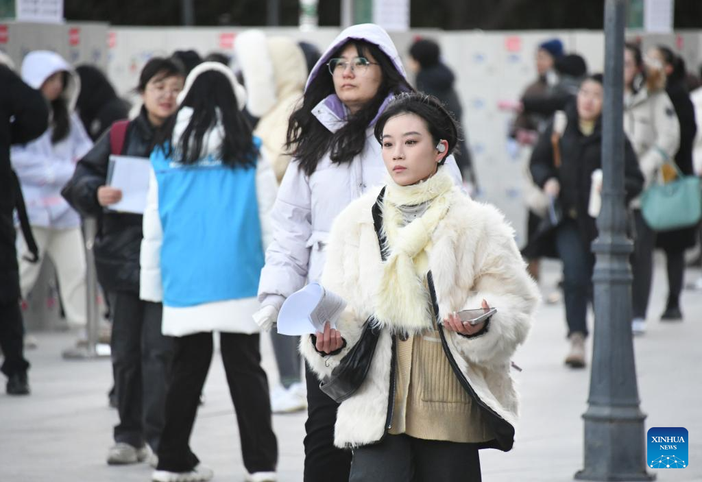 Test-takers enter an examination site for the 2025 postgraduate entrance exam in Harbin, northeast China's Heilongjiang Province, Dec. 21, 2024.