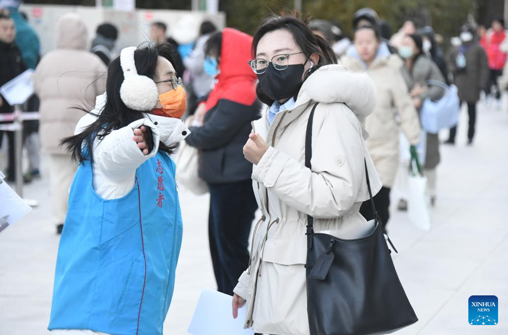 Test-takers enter an examination site for the 2025 postgraduate entrance exam in Beijing, capital of China, Dec. 21, 2024.
