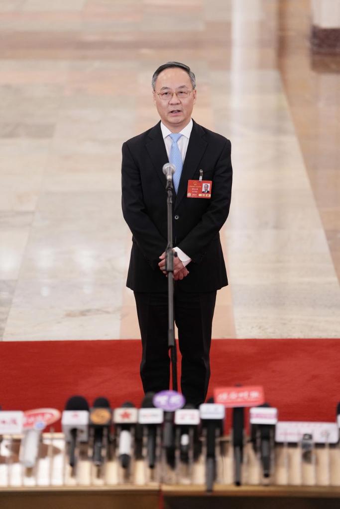 Li Yunze, head of the National Financial Regulatory Administration of China, gives an interview after the opening meeting of the third session of the 14th National People's Congress (NPC) at the Great Hall of the People in Beijing, capital of China, March 5, 2025. (Xinhua/Chen Yehua)