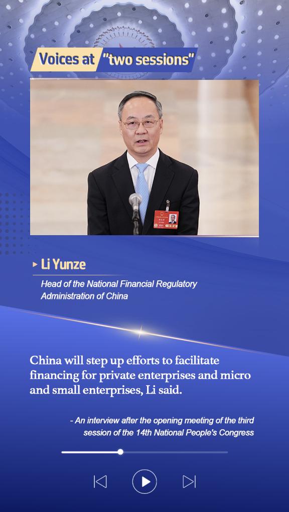 China will step up efforts to facilitate financing for private enterprises and micro and small enterprises, Li Yunze, head of the National Financial Regulatory Administration, said Wednesday.