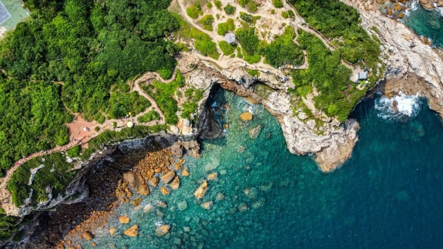 The Yangmeikeng (杨梅坑) area, home to Shenzhen's most beautiful coastline, is the filming location for "The Mermaid". On clear days, the crystal-clear waters create a breathtaking view, while the seaside boardwalk and road offer unbeatable vistas.