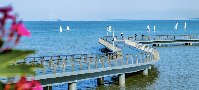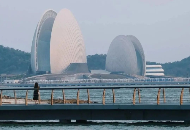 Visitors can enjoy cycling along Lovers' Road or exploring the Whale & Shark Pavilion at Chimelong Ocean Kingdom (长隆海洋王国). For breathtaking sea views, head to Hengshiji Beach (横石基沙滩) and Xianglu Bay Beach (香炉湾沙滩). Don't miss the chance to admire the city's landmarks, including Zhuhai Grand Theatre (珠海大剧院) and Haitian Park (海天公园), from the Sea & Sky (Haitian) Rest Station Boardwalk (海天驿站景观栈道).