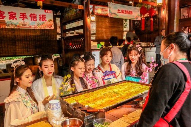 Hakka World Scenic Spot in Meizhou offers a stunning "flying sky" Hanfu show, where "phoenixes" soar through the sky. There will also be traditional dragon dances, Hakka food festivals, and a festive parade.
