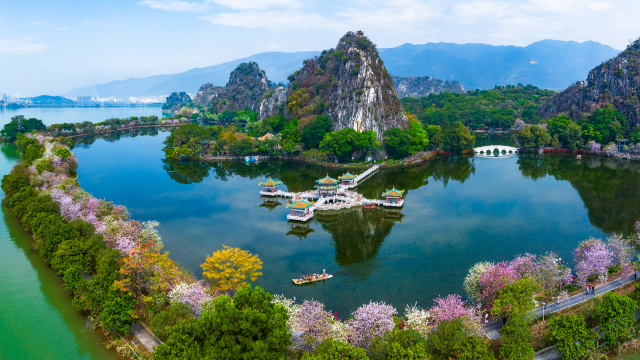As a national 5A-level scenic area, Xinghu is home to the famous Seven Star Crags and Dinghu Mountain. The spring season brings lush greenery and vibrant flowers to the destination. Visitors can enjoy boat tours through the wetland, interact with animals, refresh themselves in Dinghu Mountain's negative ion-rich air, or admire the misty, enchanting landscape of peak forests.