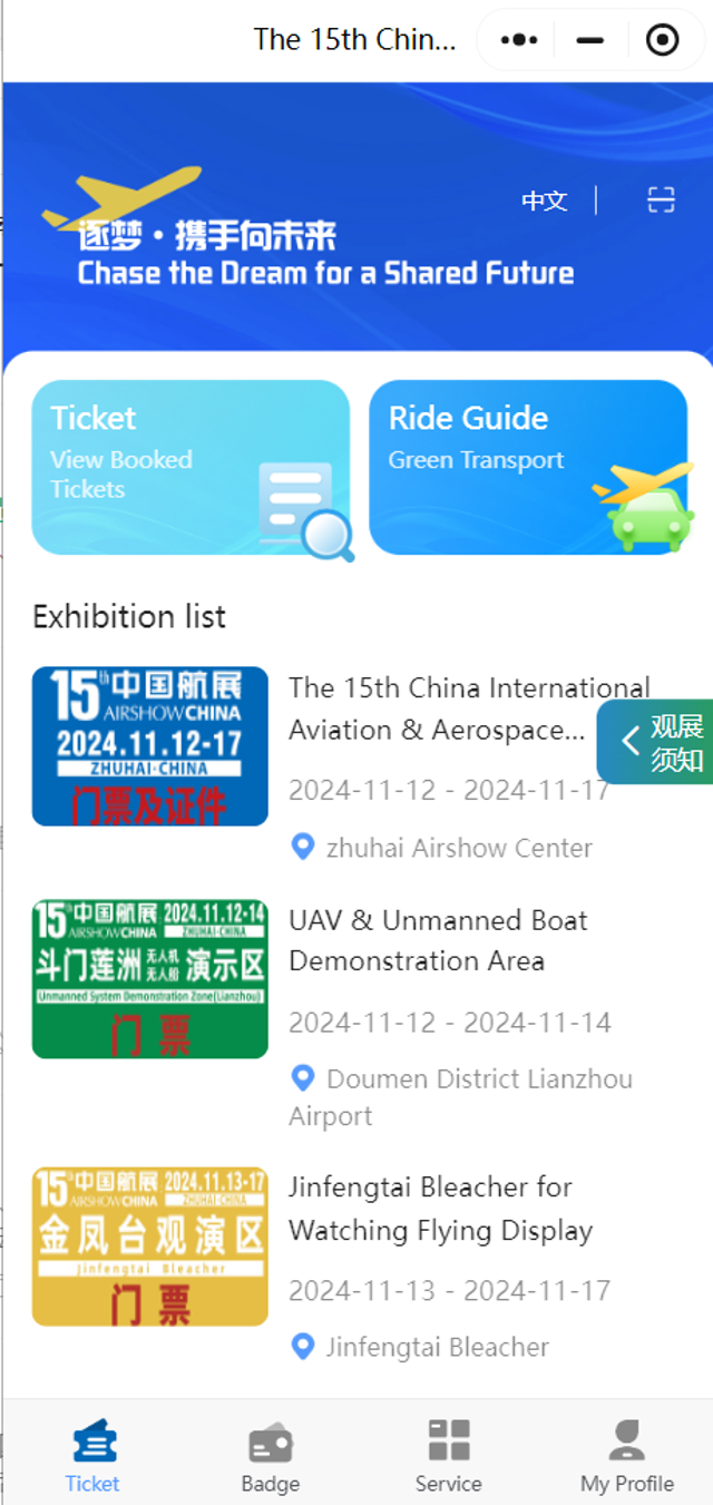 (3) Official WeChat Mini Program: "珠海航展" (ZhuhaiAirshow)