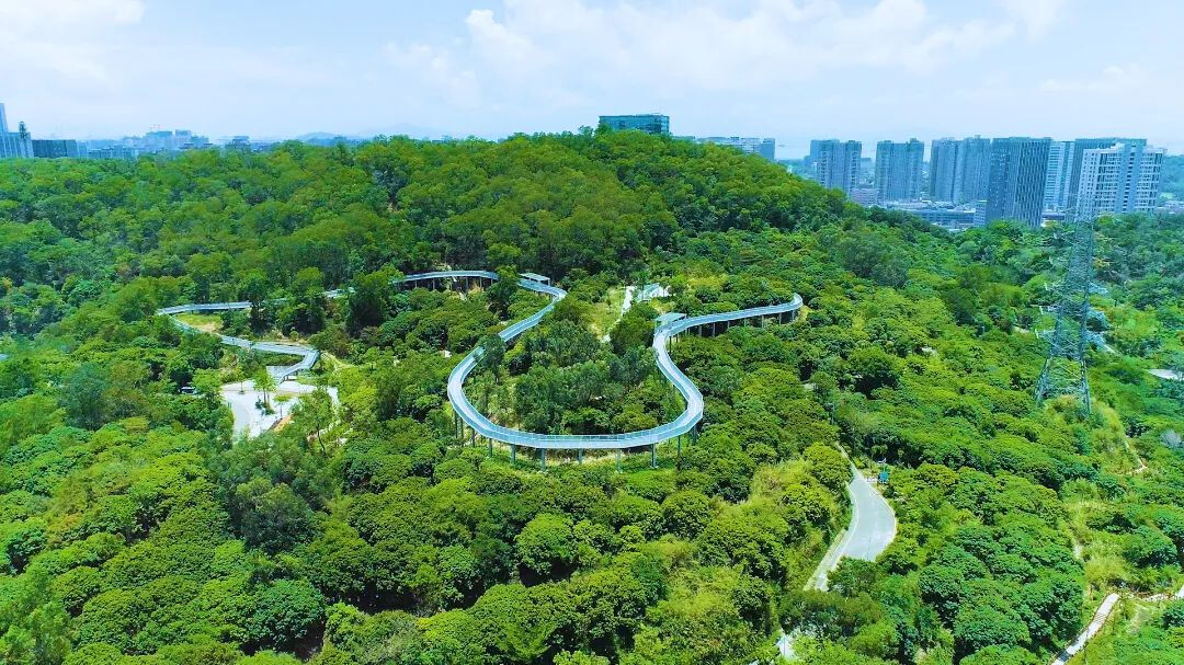 Boasting fresh air and surrounded by negative oxygen ions, Tiezai Mountain Park earned the titles of "urban leisure oxygen bar" and "citizen fitness paradise." Meanwhile, it also offers the perfect spot to capture the Shenzhen-Zhongshan Link, sunsets, and planes in one frame.