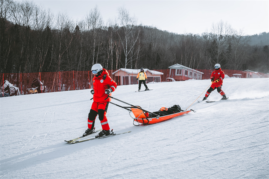 Rescuers conduct a snowfield rescue drill on Feb 9 during the 9th Asian Winter Games in Harbin, Heilongjiang province. [Photo/Xinhua]