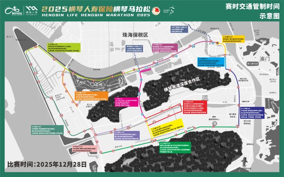 A Maratona de Hengqin 2025 está programada para o próximo domingo (28), com pontos de partida e chegada no Parque Central da Ilha Financeira de Hengqin. Com o objetivo de garantir a boa realização da prova e a segurança e fluidez do trânsito rodoviário durante o evento, serão implementadas medidas temporárias de controle de tráfego em algumas ruas, de acordo com os regulamentos relativos à segurança do tráfego rodoviário.