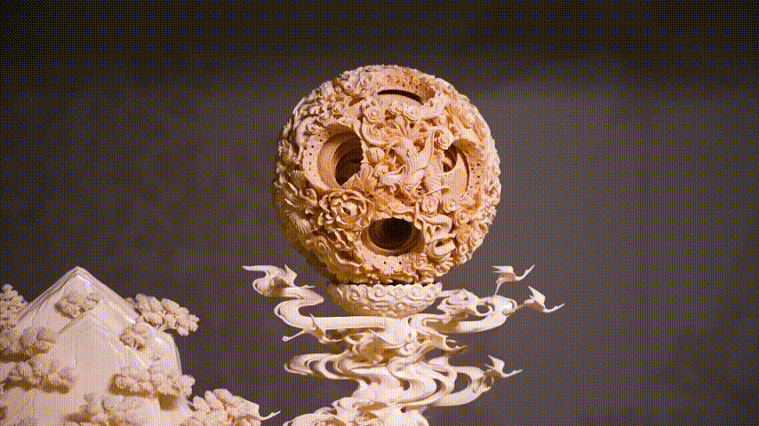Detail of the bone carving "Greater Bay Area Unity" (湾区同心) (Original video provided by Guangdong Intangible Cultural Heritage Museum)