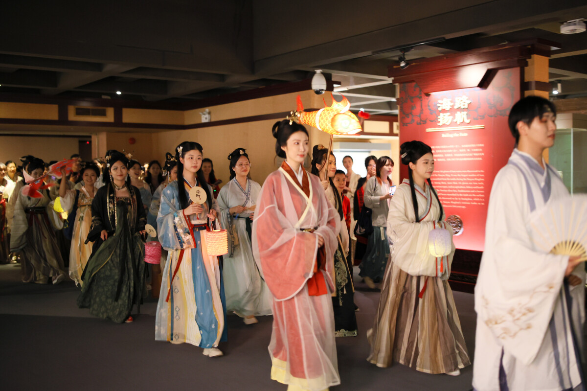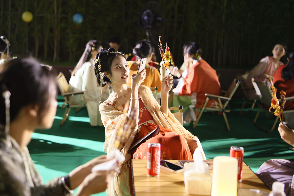 On the same night, an evening show was staged to celebrate the 40th anniversary of the discovery of the mausoleum of the Nanyue King. Over 200 lovers of Hanfu, a traditional style of clothing worn by the Han people, attended the event to experience barbecue, pitch-pot, chime song and dance at the museum.