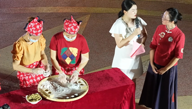 He (籺) is a type of local snack made from glutinous rice. At the event, the booth of Azhu's He was bustling with crowds. Inheritors of this intangible cultural heritage demonstrated traditional techniques, from ingredient selection to food shaping, creating delicacies that left the audience exclaiming, "delicious."
