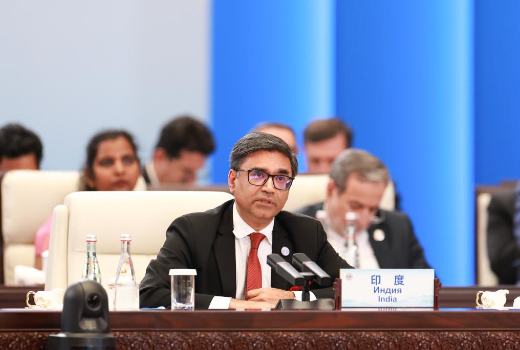 A representative of India attends the "Shanghai Cooperation Organization (SCO) Plus" Meeting in Tianjin, north China, Sept. 1, 2025. The Shanghai Cooperation Organization (SCO) convened the "SCO Plus" Meeting on Monday afternoon in north China's port city of Tianjin. (Photo: Xinhua)