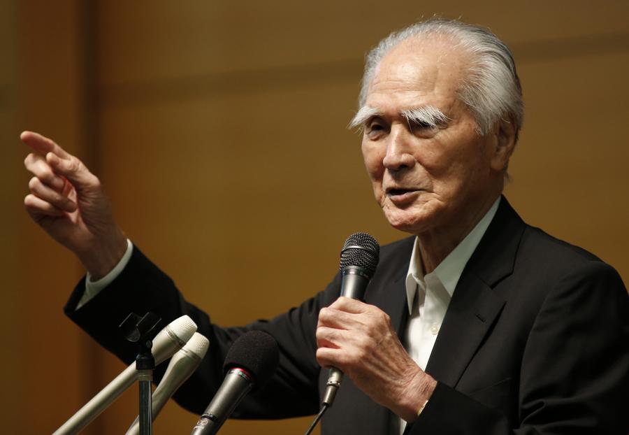 L'ancien Premier ministre japonais Tomiichi Murayama prononce un discours lors d'un forum intitulé "Déclaration Murayama et 70 ans après la Seconde Guerre mondiale" à Tokyo, la capitale japonaise, le 3 août 2015. (Xinhua)