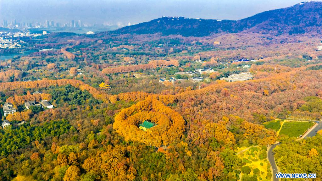 Photo aérienne prise par drone montrant le paysage du site touristique du mont Zhongshan, à Nanjing, dans la province du Jiangsu, dans l'est de la Chine, le 6 décembre 2025. (Photo : Yang Suping)
