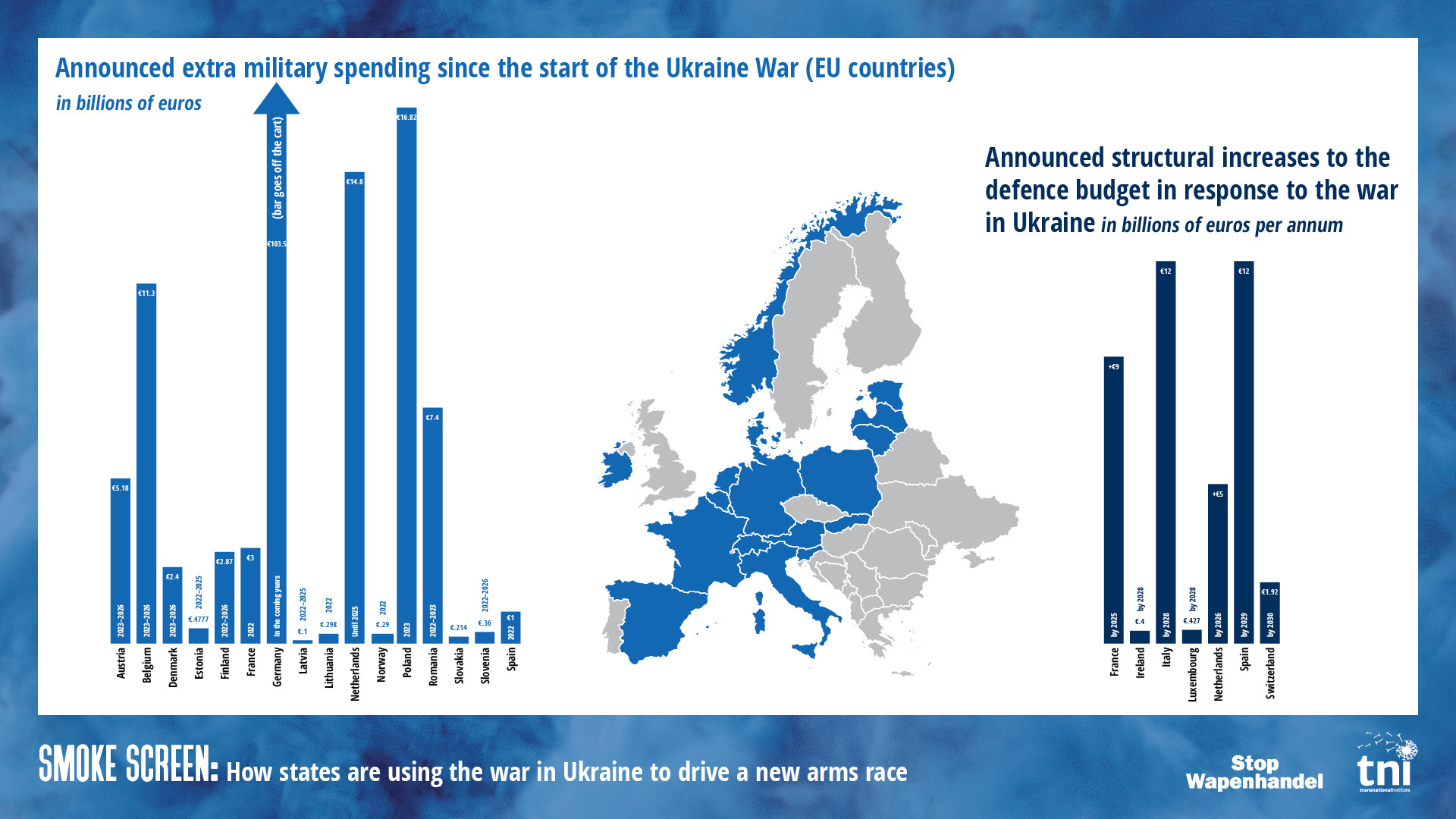 Announced extra military spending of EU countries since the start of the Russia-Ukraine conflict (source: Transnational Institute(TNI))