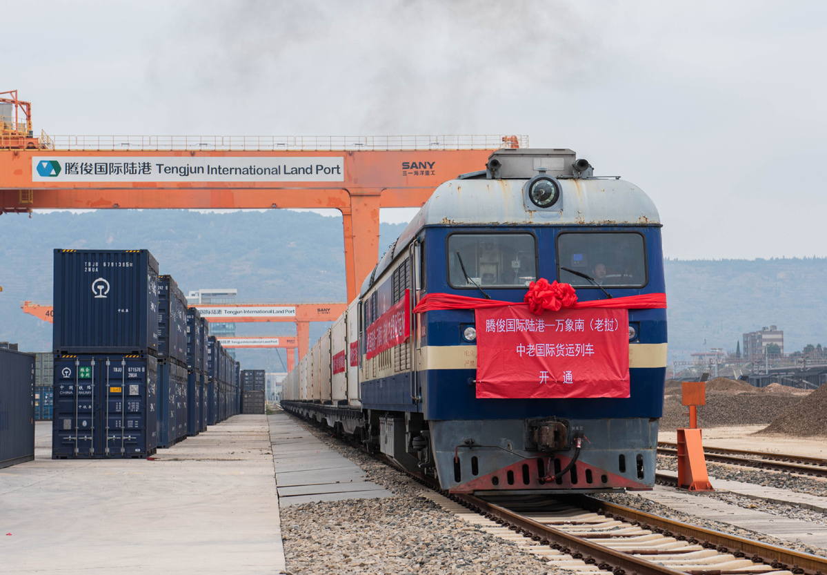 Photo taken on Dec 4, 2021 shows an international freight train bound for Laos running near the China-Laos border. (Photo/Xinhua)