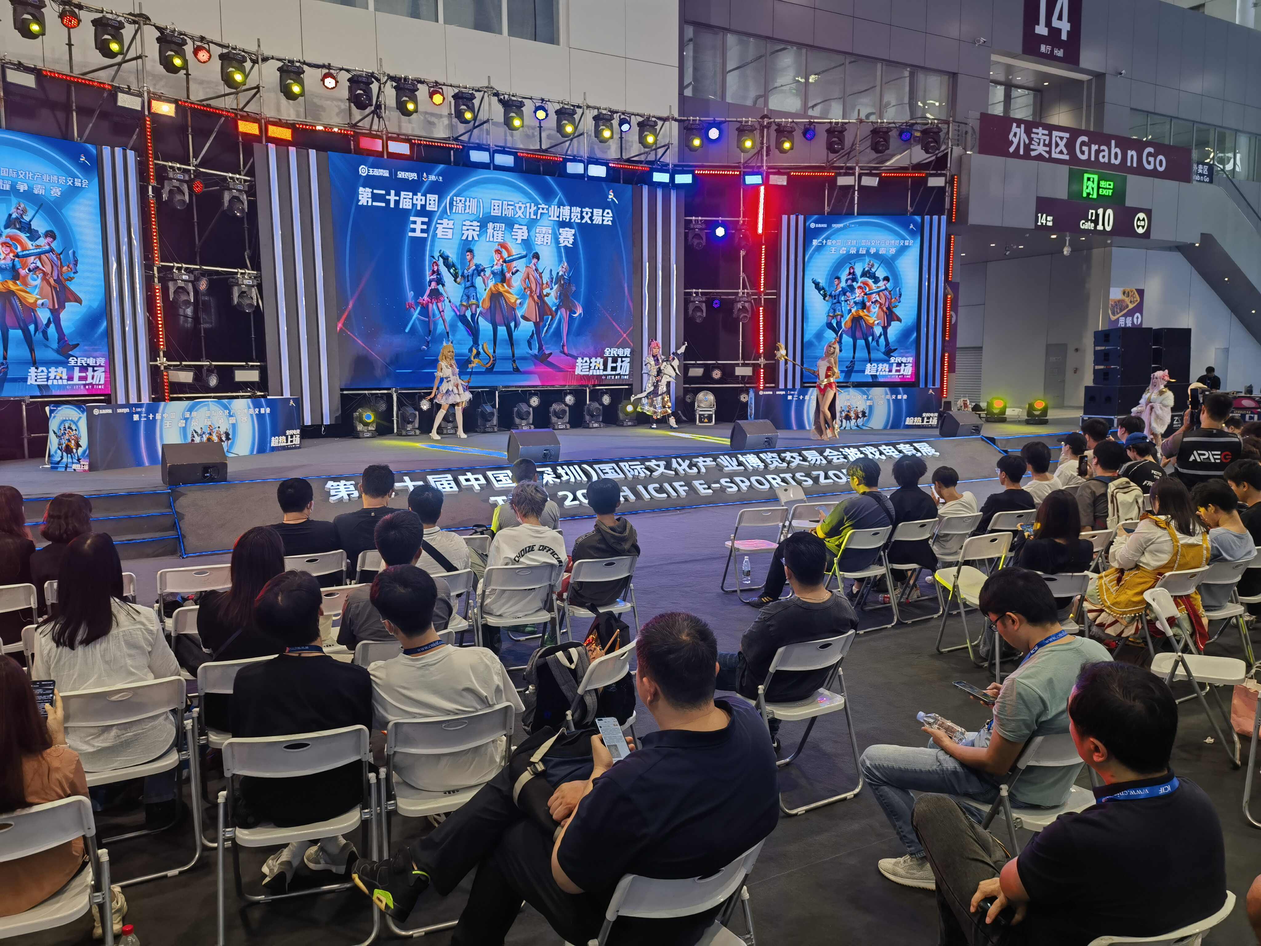 On the afternoon of May 23rd, at Hall 14 of the Shenzhen International Convention and Exhibition Center, the Arena of Valor tournament was underway with fervor at the gaming and e-sports zone. Two competing teams engaged in heated battles, while numerous spectators watched attentively. Two live commentators provided detailed analysis nearby. During breaks in the competition, three cosplayers took the stage, attracting a crowd of onlookers and photographers. Additionally, Hall 14, in collaboration with multiple gaming companies, hosted various activities including global premieres, debuts, and on-site negotiations for gaming products.