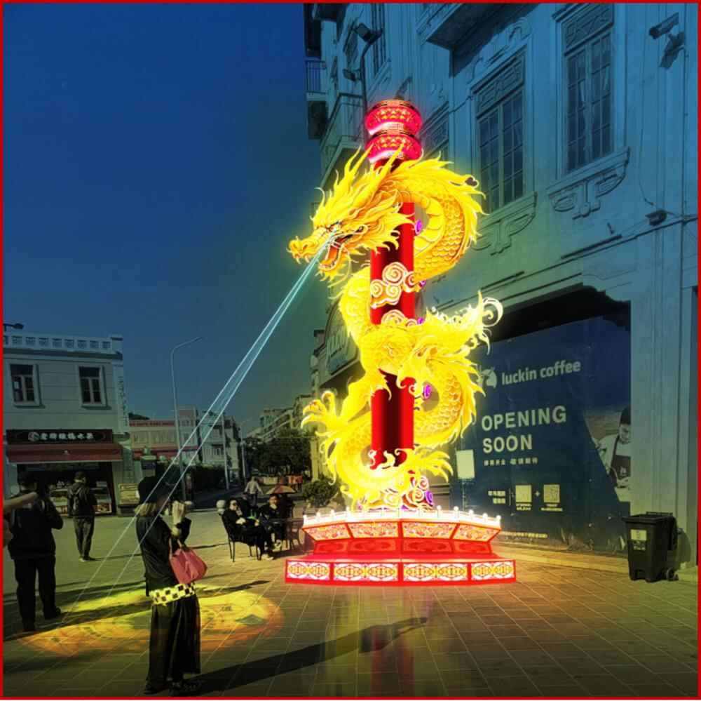 Lantern appreciation is the highlight of this event, with a variety of dragon-themed lanterns garnering significant attention and anticipation. Five colorful dragon pillars have been set up at street corners around the Sun Yat-sen Memorial Pavilion. In front of the Nansheng Department Store, a themed lantern wall for this show has been installed. To highlight the characteristics of the hometown of overseas Chinese, lanterns representing iconic buildings and special products from countries where overseas Chinese in Chaoshan are mainly concentrated, such as the Grand Palace in Thailand, the Merlion Park in Singapore, the Angkor Wat in Cambodia, the Petronas Twin Towers in Malaysia, and the Burj Khalifa in the United Arab Emirates, will be designed to create a themed exotic street with unique characteristics.