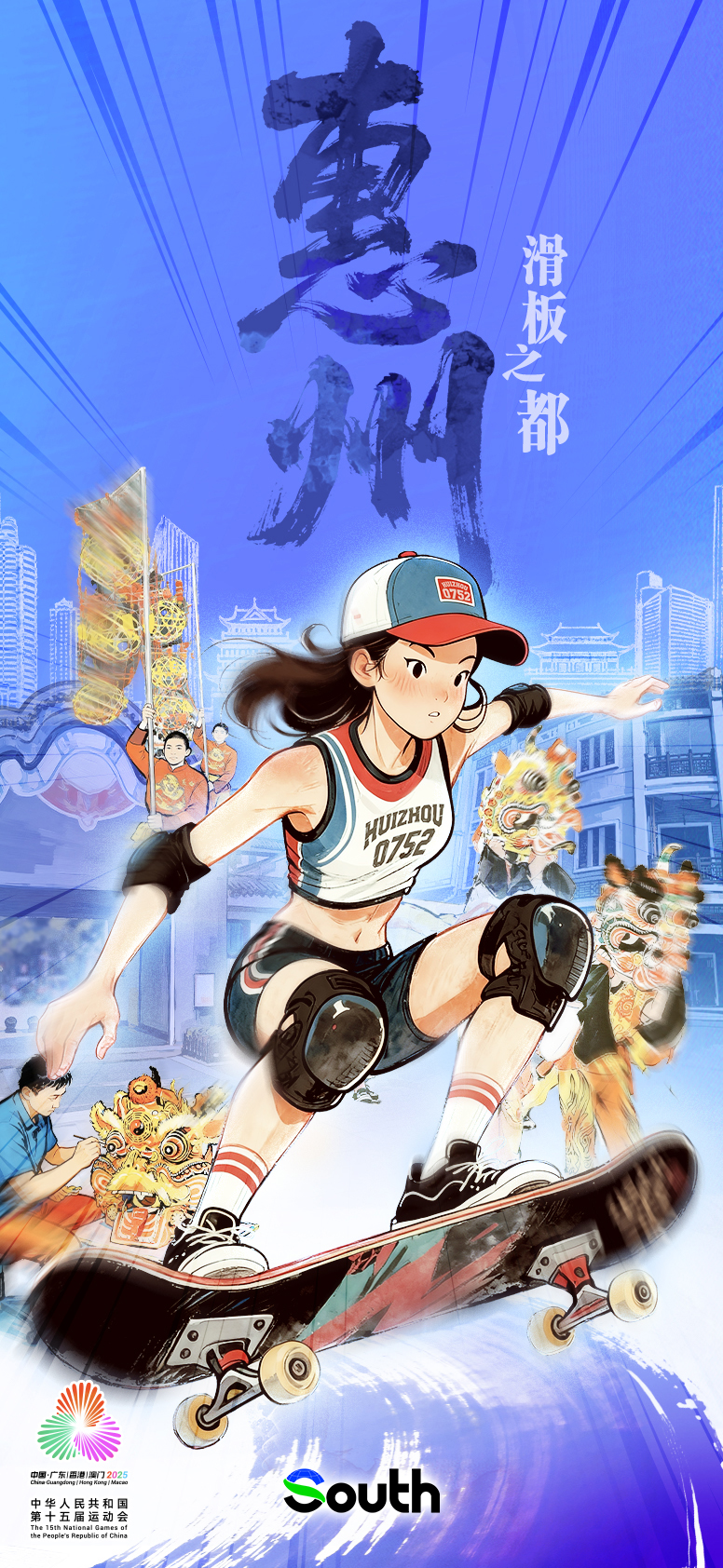 Skateboarders leap beyond the horizon. Sweat nurtures the dreams of youth. Huizhou stages a spectacle of "Fast & Furious". The youths chase the wind along the surging Dongjiang River. Their hearts beat as one, forging ahead without fear.