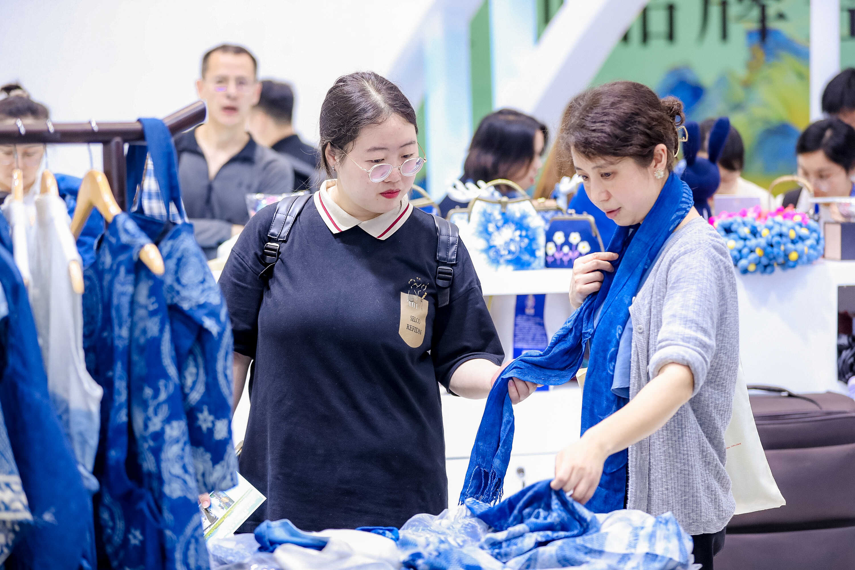 Embroidery, brocade weaving, batik, silver jewelry, utensils, song and dance… Nearly 60 companies from Guizhou showcased close to a thousand exhibits, covering Guizhou's distinctive cultural products, intangible cultural heritage, and cultural creative goods. Among them, the most attention-grabbing cultural creative product is the Dragon and Phoenix Embroidered Golden Robe, which is inspired by traditional Chinese culture. The robe weighs around 3 kilograms. Six seasoned artisans, with over 10 years of experience each, spent 240 days to design and produce it. Nearby, gold and silver hats inspired by the ethnic minority jewelry from the deep mountains of southeastern Guizhou, as well as delicate Guizhou silverware, were also on display.