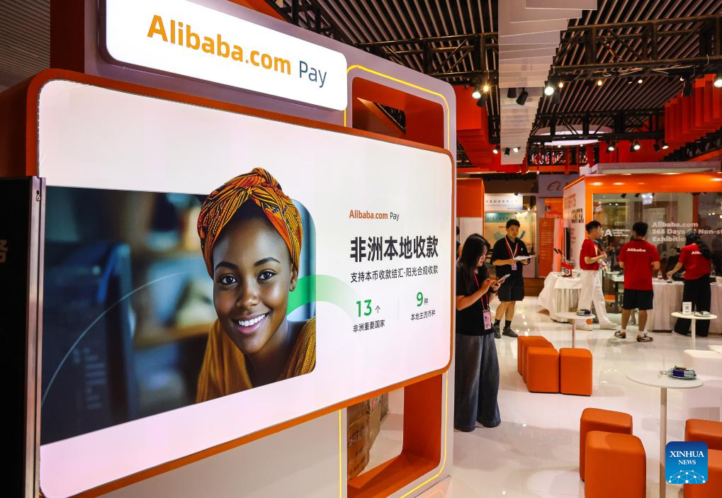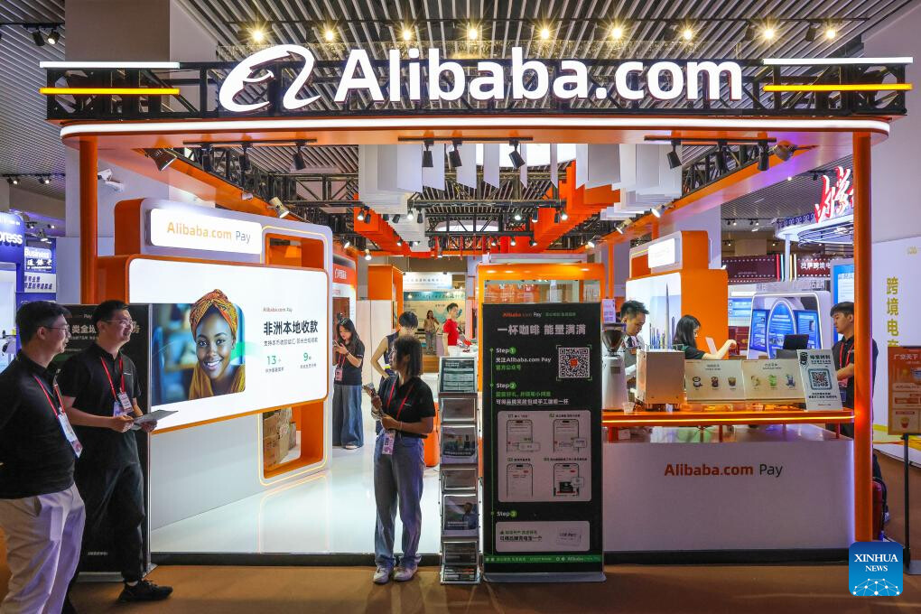 People visit the booth of Alibaba.com during the 136th China Import and Export Fair in Guangzhou, south China's Guangdong Province, Oct. 15, 2024. (Xinhua/Liu Dawei)