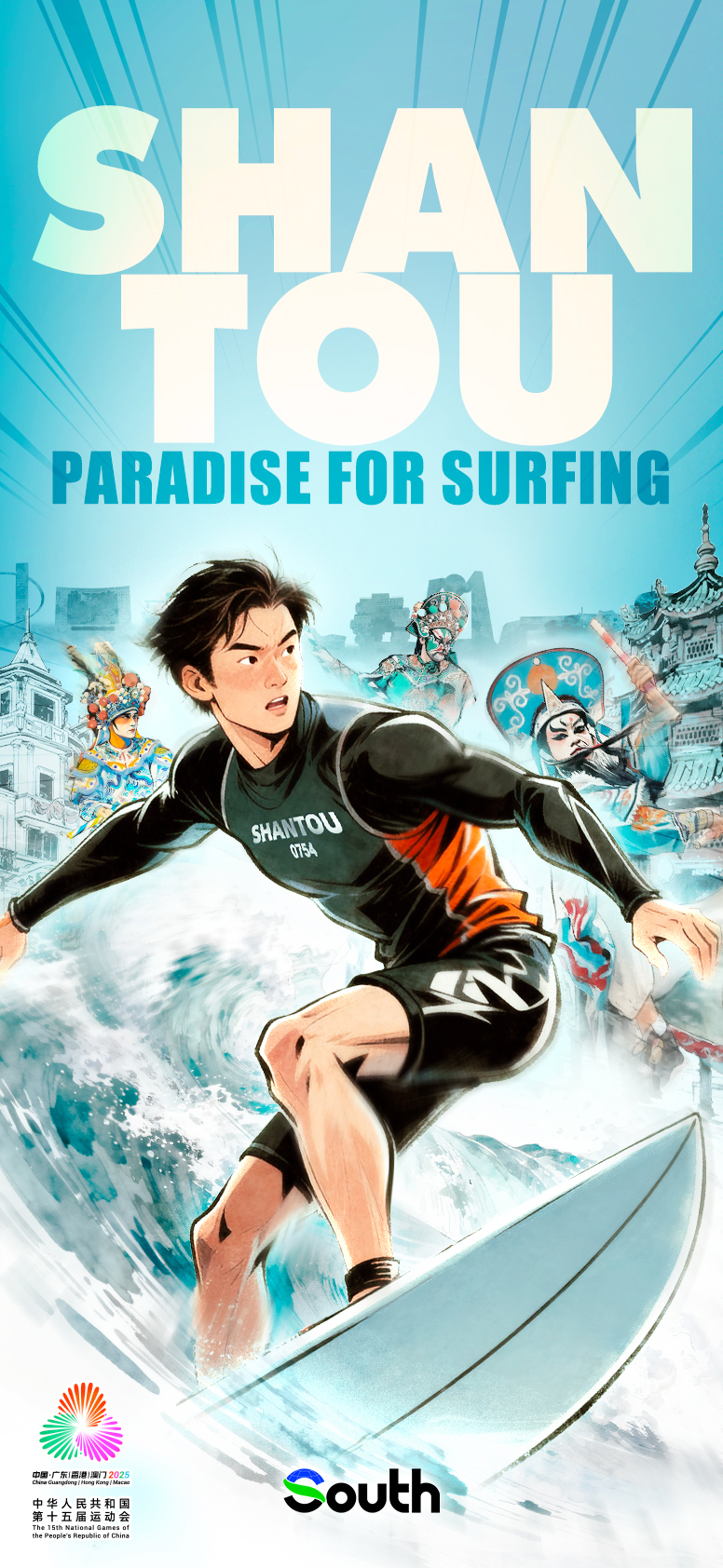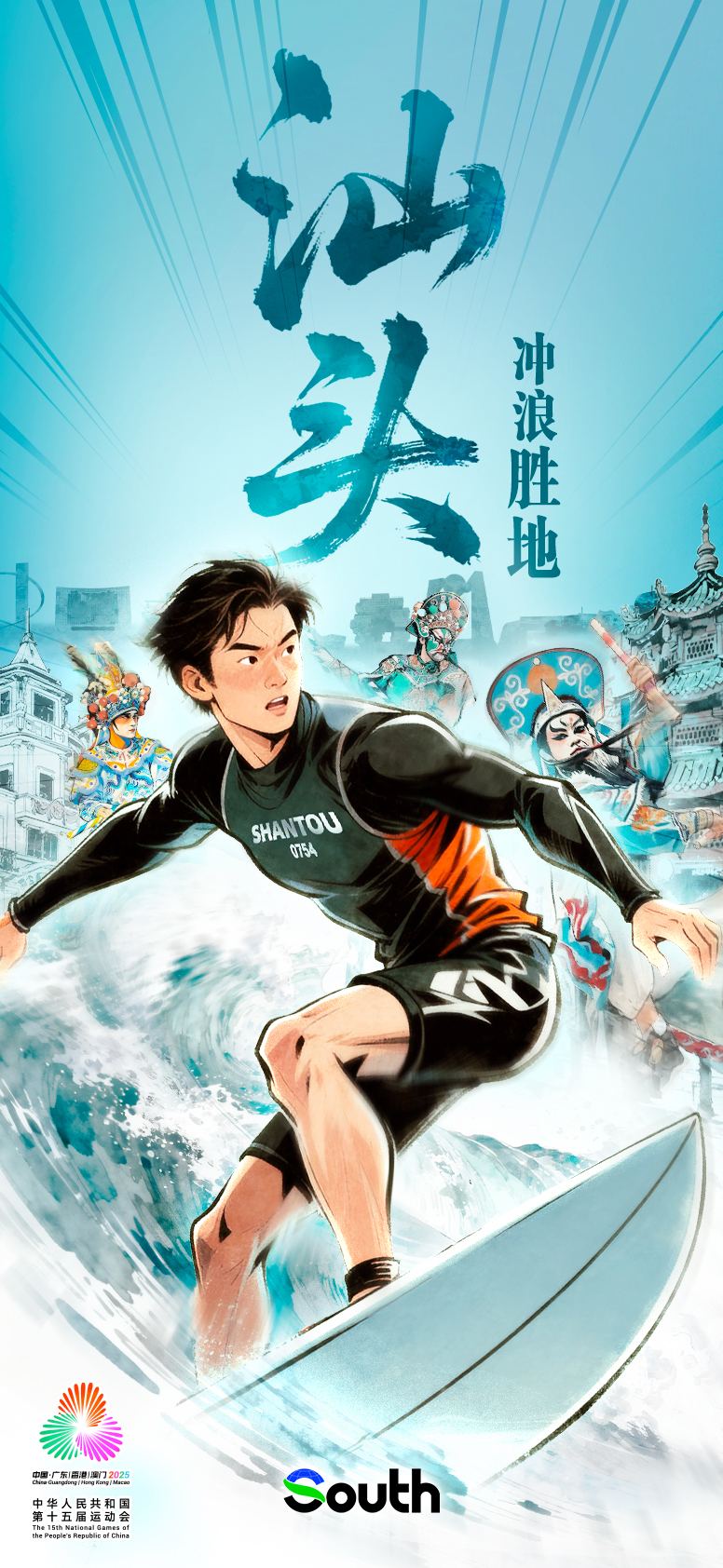 The surfboard cuts through towering waves, swift as an arrow. Surfers stand at the crest of roaring waves. As a harmonious and scenic hometown of overseas Chinese by the South China Sea, Shantou is a vibrant Special Economic Zone and a premier surfing destination. Athletes are riding the surging waves excitedly. They start the passionate 15th National Games, and continue to write their legendary stories on the waves.