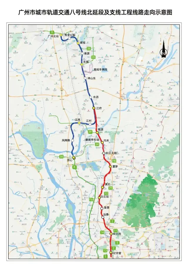 Scheme diagram of the northern extension and branch line of Guangzhou Metro Line 8