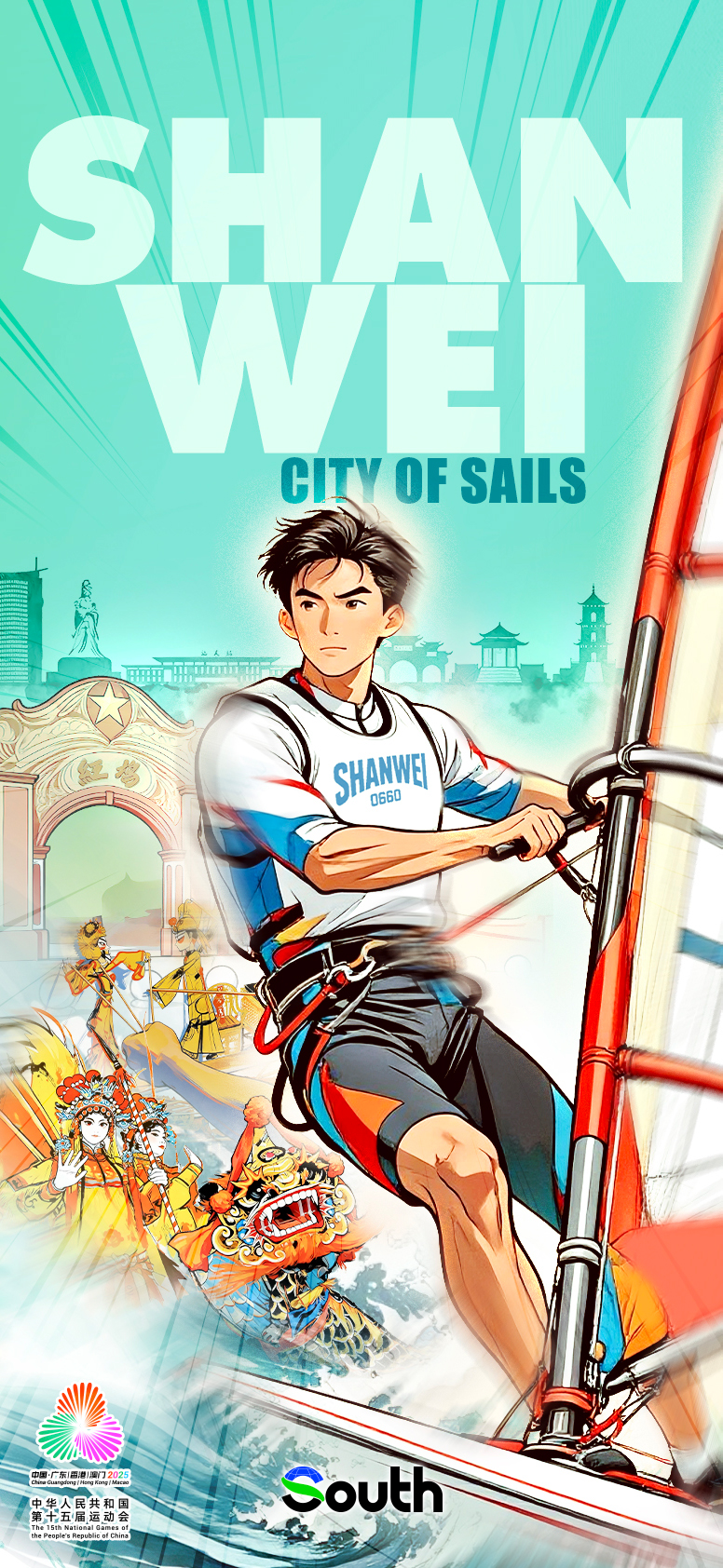 On the coast of the South China Sea stands Shanwei, the City of Sailing. A constellation of islands scatters, standing at the forefront. Thousands of boats race in the current. Rise with the wind, and sail straight to the vast sea.