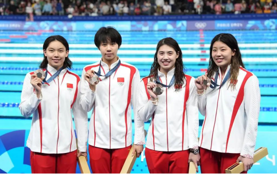 On July 27 (local time), China's swimming team claimed the bronze in the women's 4x100m freestyle relay at the 2024 Paris Olympic Games with a time of 3:30.30, also breaking the Asian record.
