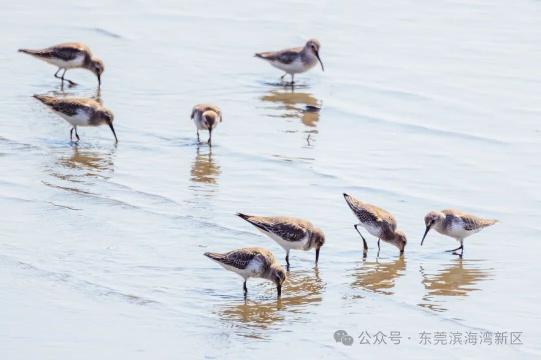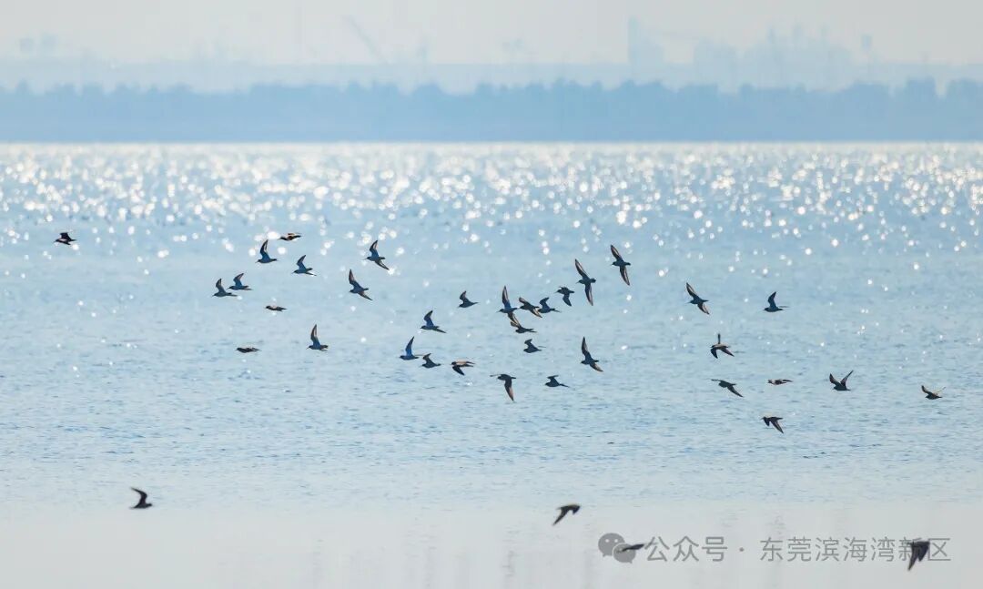 Migratory birds continue to choose Dongguan as a "stopover" during their journeys, showcasing the harmony between the city and nature in a vivid annual spectacle. Visitors can unwind while birdwatching, enjoy the sound of the waves, and witness stunning seaside sunsets—all in one place at Binhaiwan.