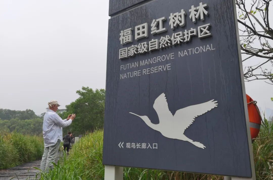 A resident takes a photo at Futian Mangrove National Nature Reserve.